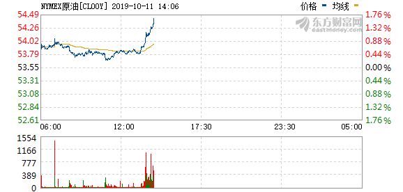 周五下午13:29,WTI原油、布伦特原油涨逾1%,WTI原油站上54美元/桶,布伦特向上触及60美元关口,刷新10月1日以来新高;上海原油期货主力合约涨超3%。