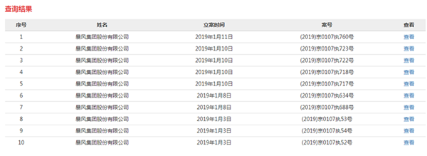 消息面上,北京法院将暴风集团列入一系列被执行人名单。自2019年1月3日至1月11日,暴风集团增加了十几条被执行人信息。